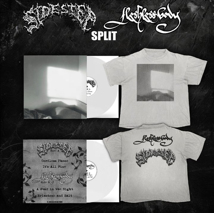 A lathe cut 7 inch of the sidestep and fleshless body split EP and screen printed shirt